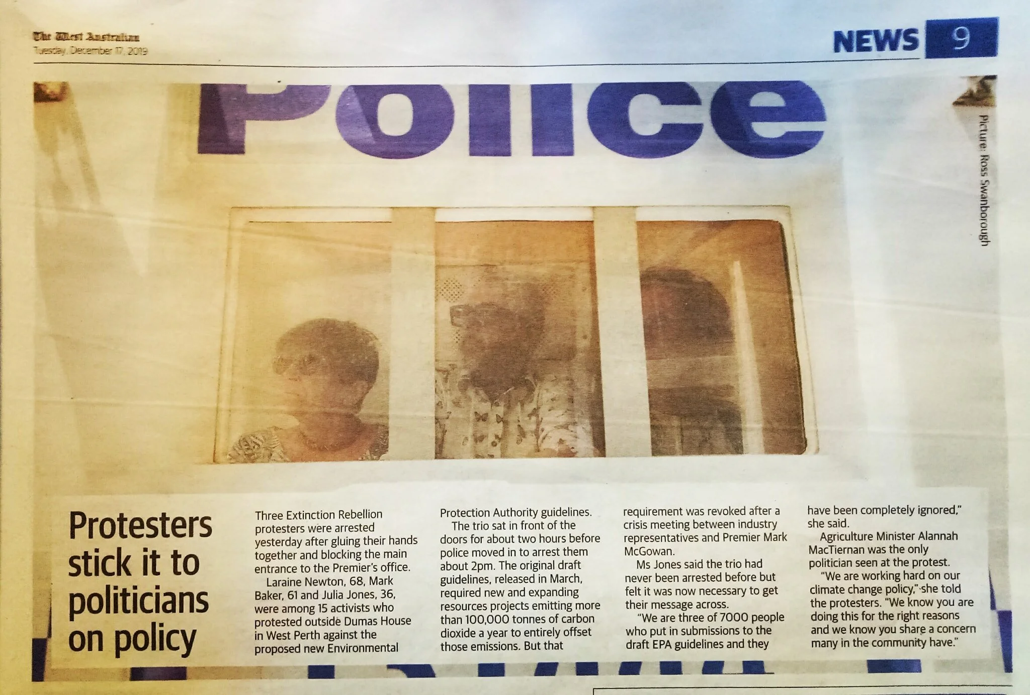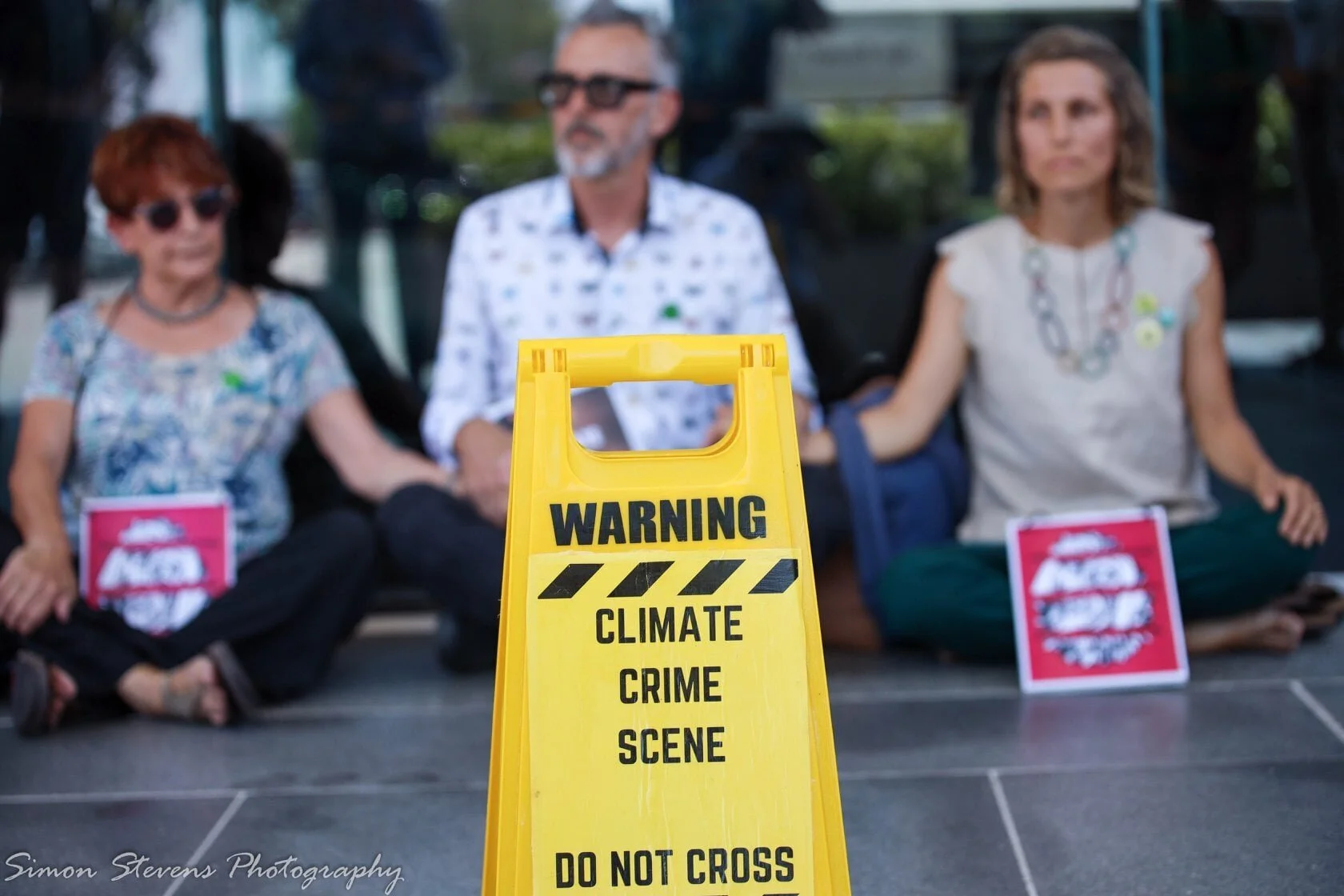 So, together with two caring and brave grandparents, I've met through the Extinction Rebellion we blockaded the door of our Premiers office and declared the building a climate crime scene.
